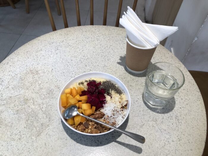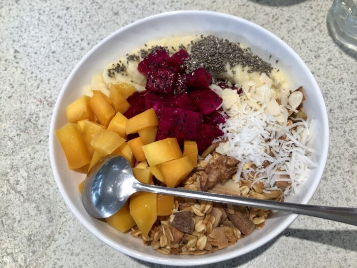 常夏でのスムージーボウルはおいしくて、だんだんとカラダが冷えていく。そのうち上着が必要なほどに冷えていった、いいね。