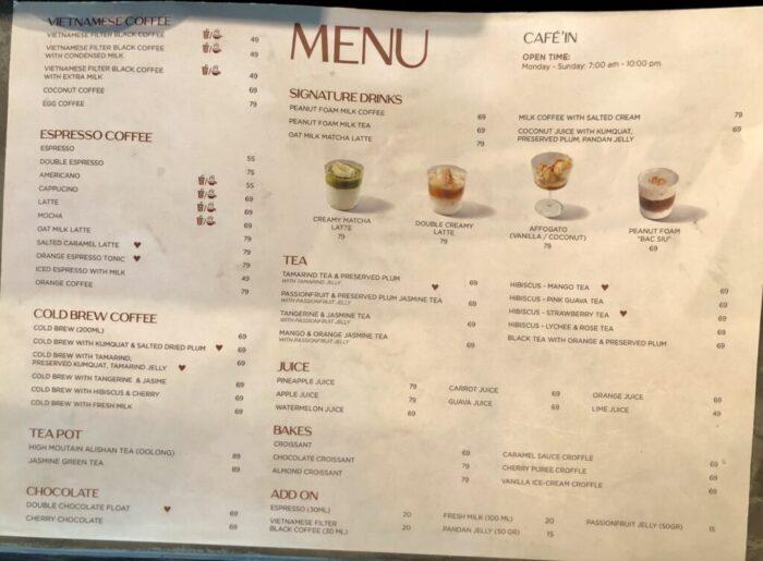 英語とベトナム語のメニューが置いてある。