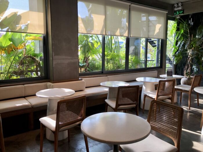 横は交通量が多い道路なのでバイクや車の音なんかはずっとしているけど、ガヤガヤした雰囲気じゃないし、音楽も悪くない。