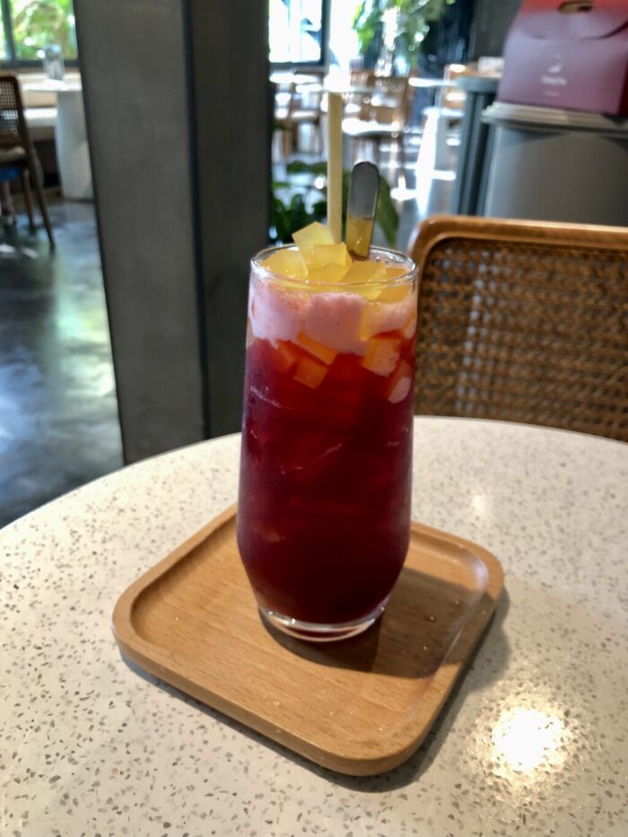 TAMARIND TEA ってのを初めて飲んだんだけど、これ好きだなぁ。オレンジピールと柑橘系のゼリーが入っていた。