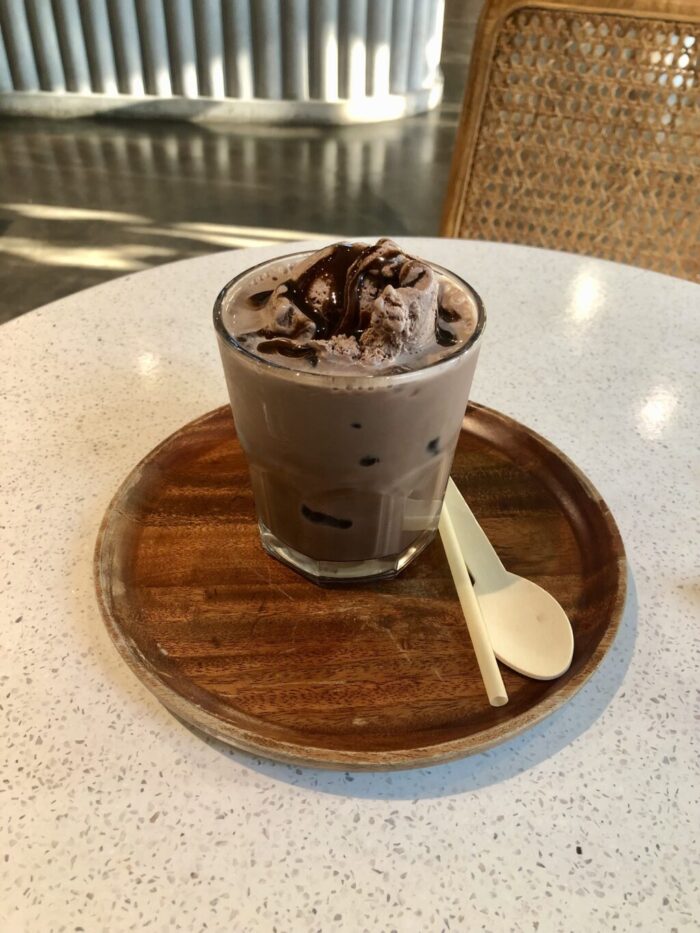 チョコアイスがのっていて、甘くておいしい!