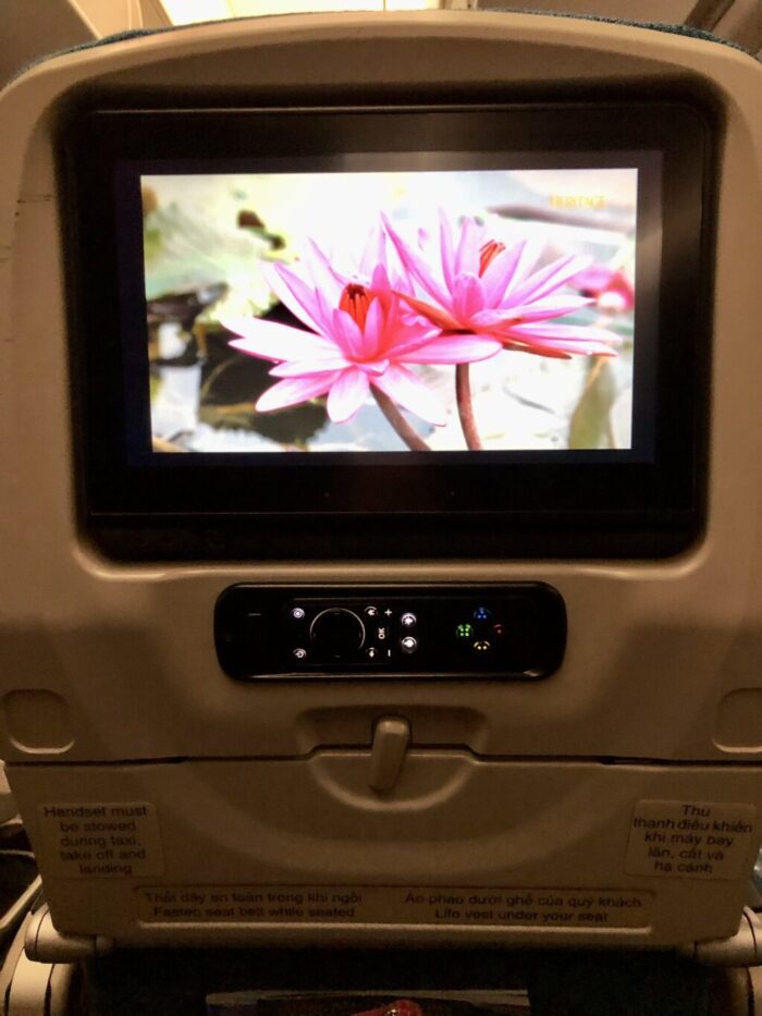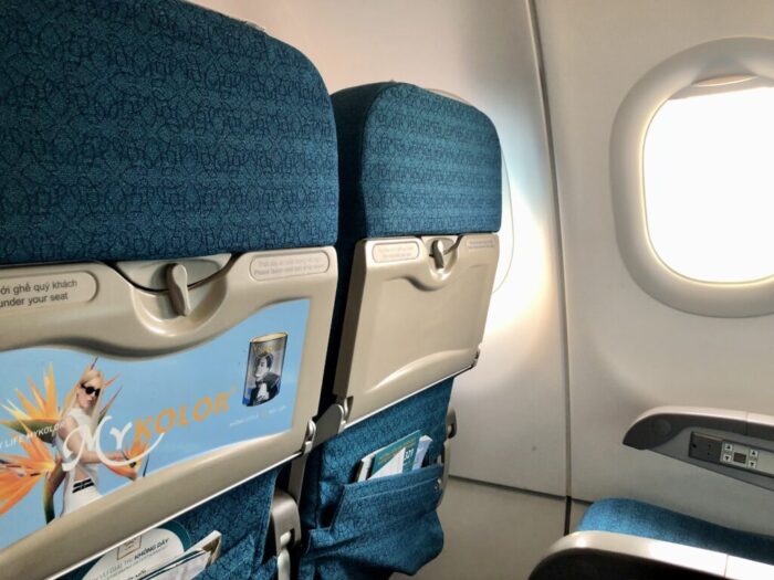 ベトナム航空のメインカラーはブルーグリーンで、CAさんのアオザイも機内もみんなこの色でまとめられている。