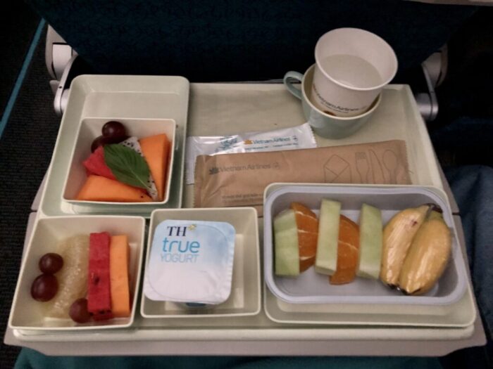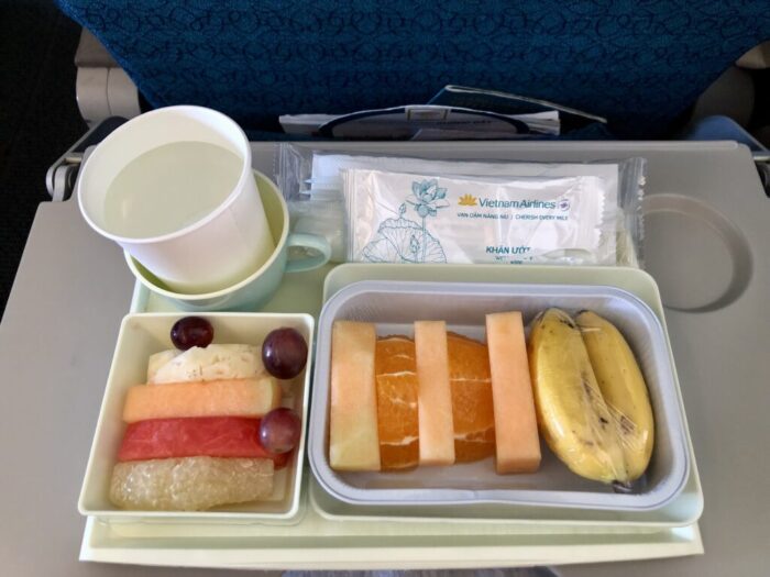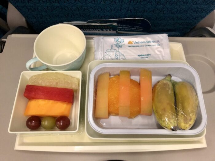 機内食って苦手なものがあったり、味が合わなくてがっかりすることがよくあるんだけど、果物なら大きくハズレることがなくていい。