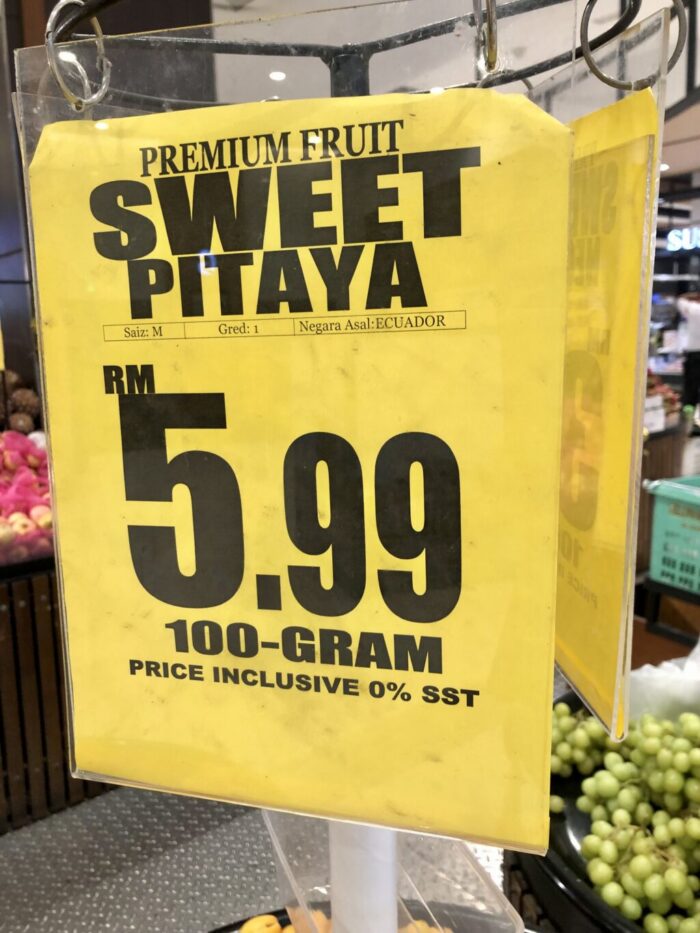価格表示だと「RM 5.99」のように表示されていて、5リンギット99センとなる。
