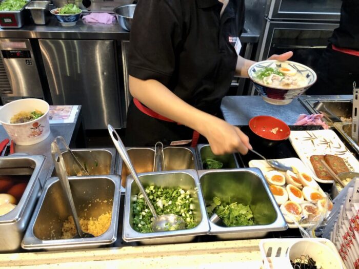 メニューに応じたトッピングがされていて、ネギやニンニクなどは「入れても大丈夫?」って聞いてくれる。