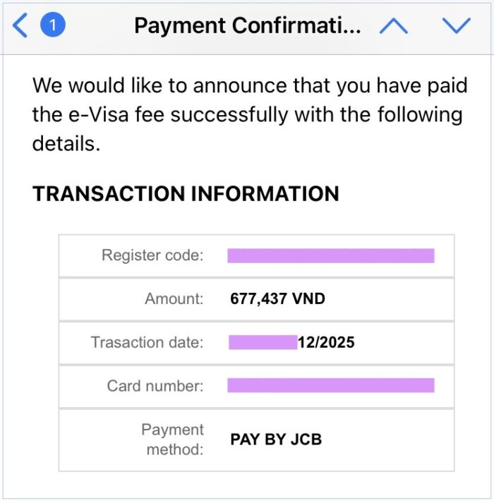 ちなみに、90日の観光ビザの申請料は25ドル。25ドルは 67万ドンで、日本円にしたら 4,078円の請求が来た。
