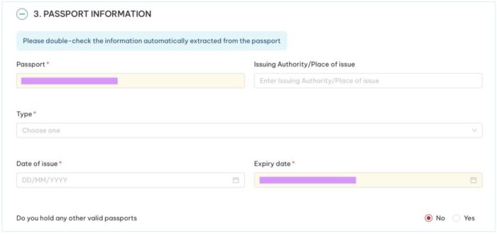 他のパスポートって前のパスポートも含まれるのかな?よくわからないので「いいえ」にしておいた。