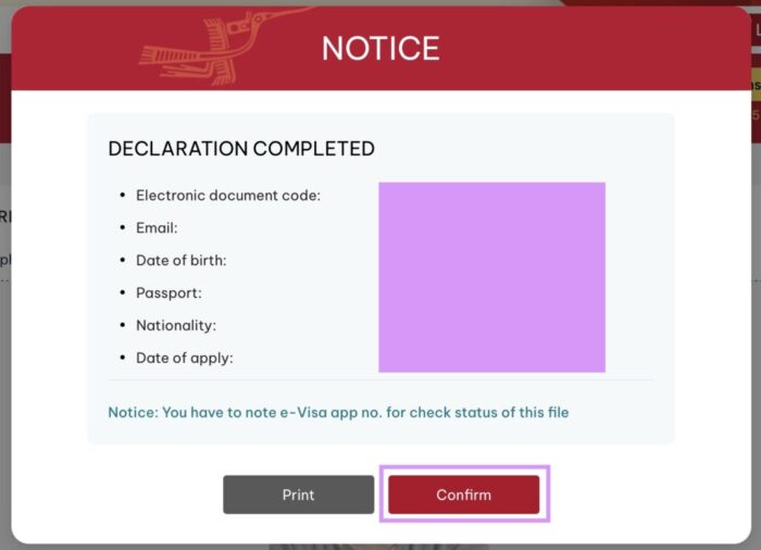 「e-Visa app no」というのはこの画面で出てきた「Electric document code」