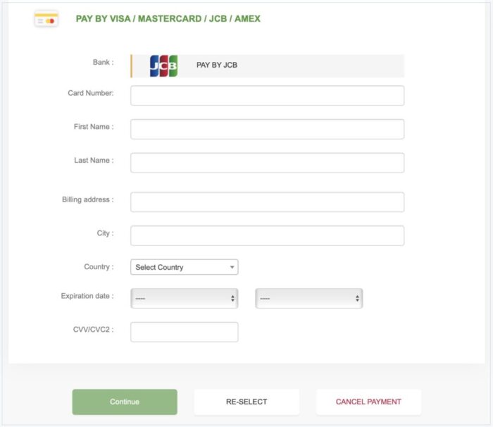 再び「Continue」を押したら、すぐにJCBのセキュリティ画面が出てきた。